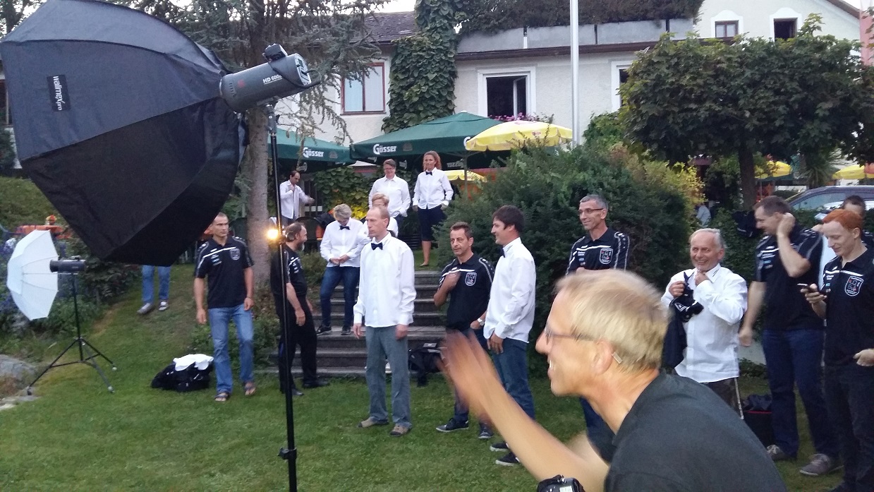 Damit all die Mühe in Organisation und Umsetzung der neuen Kleidung auch entsprechend gewürdigt und photographisch festgehalten wird, trafen sich ALLE(!!!) 25 Meisterschaftsspieler am 11.09.2016 beim Vereinslokal „Schlüsselwirt Hader“, um sich von Starphotograph Hans Hofer ablichten (und anschließend wohl bestmöglich im Photoshop aufbereiten 🙂 ) zu lassen.